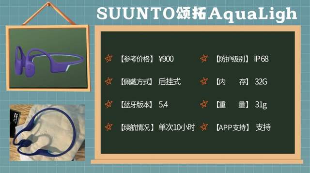 颂拓(SUUNTO)一直专注于为极限运动和水上运动提供高性能设备,这款AquaLigh耳机就是其为游泳运动量身定制的一款耳机。专为水上运动设计,AquaLigh在音质、舒适度和防护能力上都有出色表现,尤其适合喜欢游泳或者水上运动的用户。