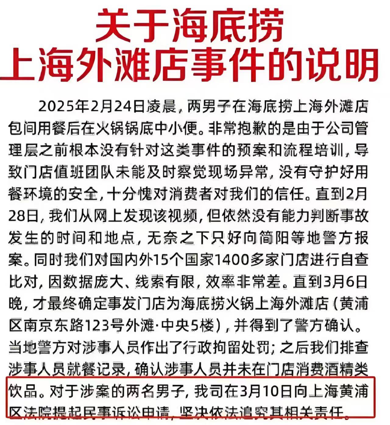 同一时间,为维护自身合法权益,3月14日海底捞正式起诉,要求涉事少年及其监护人公开道歉,并赔偿2325万余元损失。