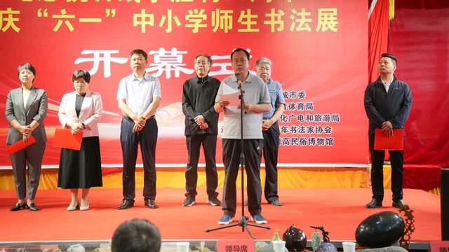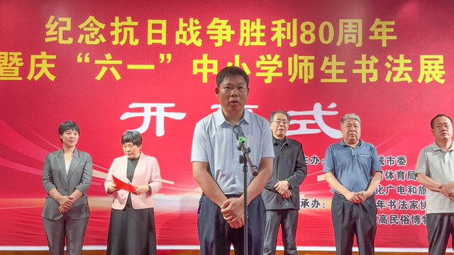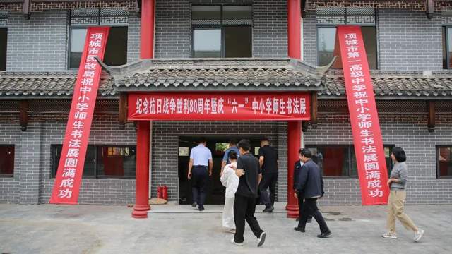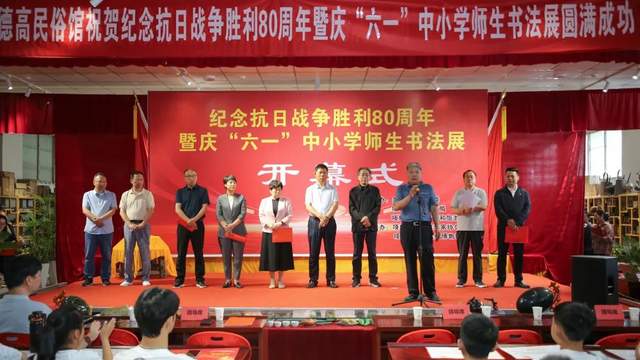 市人大常委会副主任张春志,市政协副主席熊向华,市政协原副主席徐汝芳,市委组织部副部长、老干部局长王照明,市文联党组书记、主席李伟,市文化广电和旅游局党组书记、局长李娜,市人大常委、德高置业董事长、德高民俗博物馆馆长李新中,团市委副书记靳北平,市教体局副局长张博,周口书画家协会会长、项城青年书法协会会长孙沄,河南省书画家协会副主席、周口市侨联书画研究院院长李树祥,周口市书法家协会副主席田云峰等领导,以及中小学师生、家长500余人齐聚一堂,共赏翰墨之美,传承抗战精神。