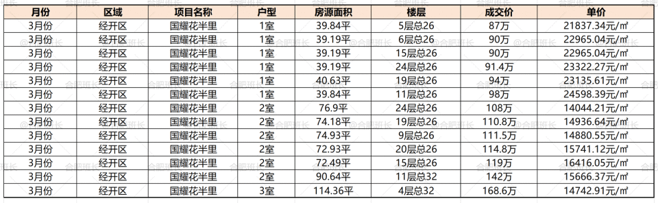 经开区溢价最高的是168玫瑰园西校,其中小户型学区房又以国耀花半里占据成交主力,3月合计成交13套,其中39-40平均价达2.3万,明显高于70平以上户型的1.5万。