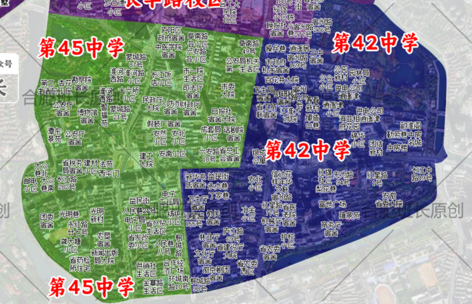 庐阳可谓合肥教育最强区,拥有南门小学+45中合肥王牌学区组合,还有四十二中、安三小、长江路二小、长江路三小、红星路小学、永红路小学、逍遥津小学、淮河路小学等优质教育资源,在学区房市场是最受欢迎的。