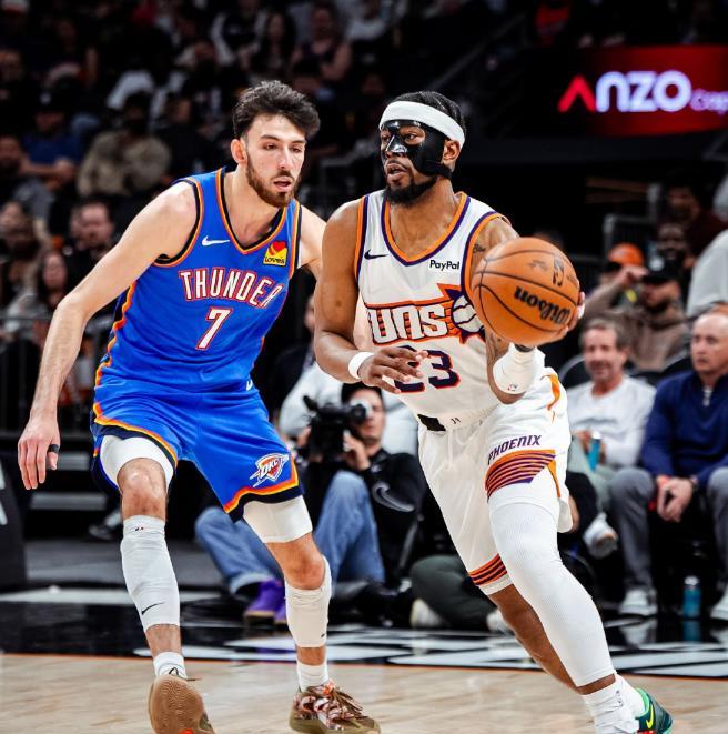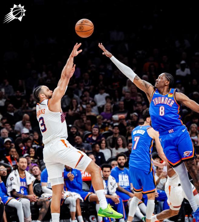 太阳曾在休赛期拆解三巨头阵容,只有布克带着新组合进入赛季。刚击败达拉斯独行侠、状元郎弗拉格之后,他们的战绩33胜22负,比去年同期好太多,季后赛机会明朗。可是这场比赛太阳要连打两天,为保护布克和杰伦格林,没让他们出场。狄龙布鲁克斯顶替成为核心,半场已斩获14分2板4助2断,但其他人不给力,太阳带着23分劣势回到更衣室。下半场狄龙还顶着雷霆冠军级防守,交出23分5板4助2断的全面数据。可吉莱斯皮在双核缺阵下哑火,全场只得6分,使得狄龙成了独木难支。