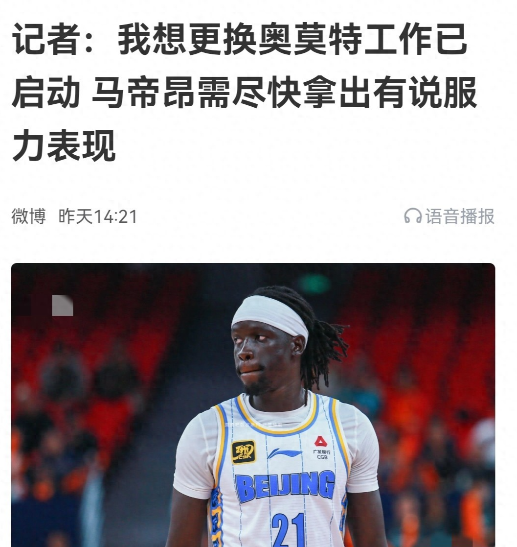 可本赛季奥莫特状态下滑严重,在场上也毫无积极性,因此几乎被球队弃用。目前他场均贡献0分1.5篮板,据北京媒体人爆料,球队即将启动换外援工作。