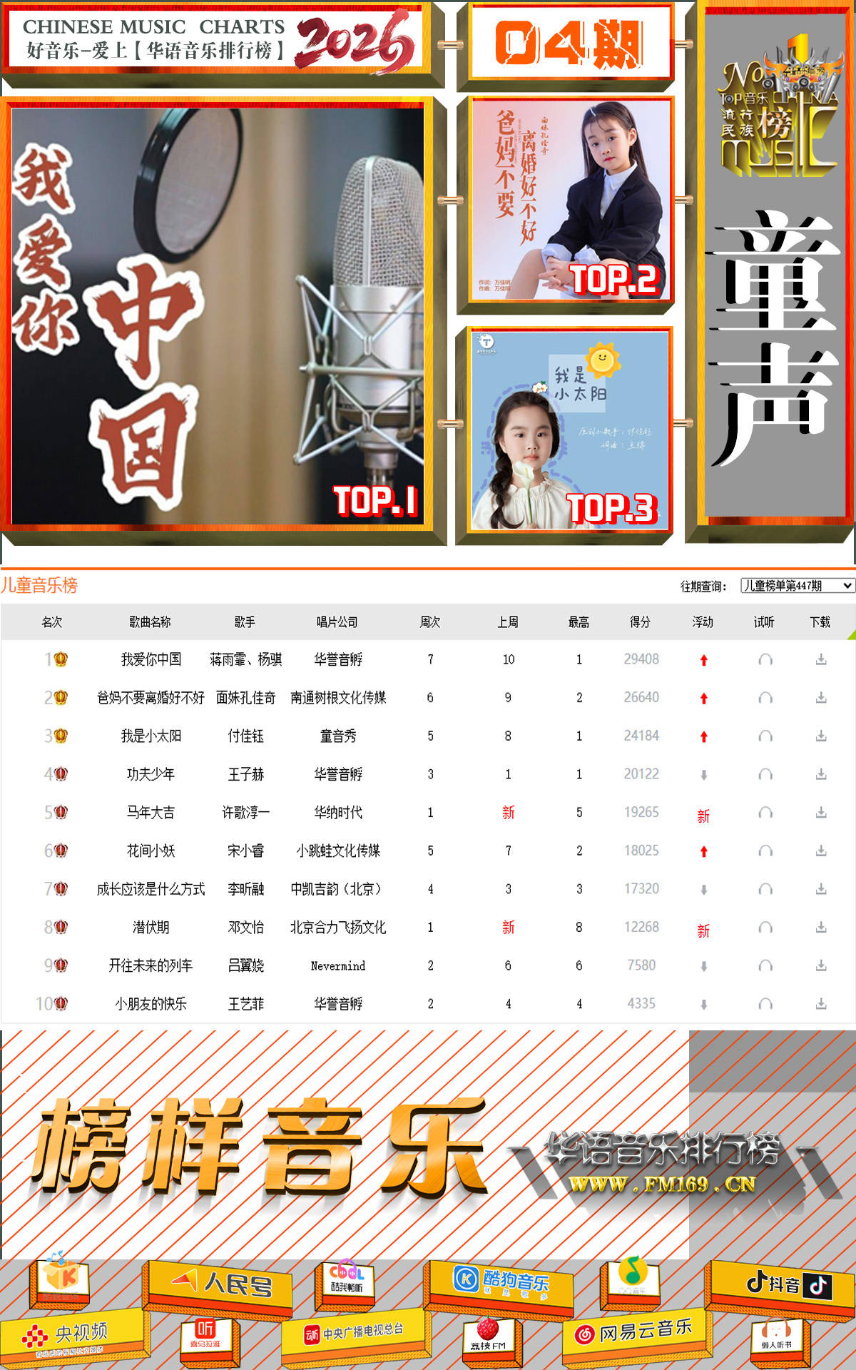 华语音乐排行榜【内地总榜】第855期2026年第04期榜单排名