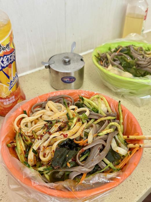 这家店开了十多年啦,凉拌手擀面和热玉米面是桌桌必点的招牌!我超爱他家的凉拌手擀面,吃起来满口都是面香,越嚼越有味。