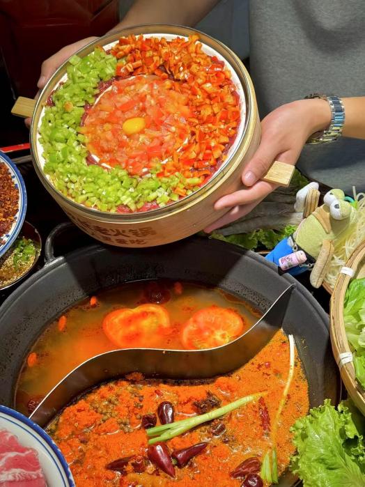 不能吃很辣的还可以选三拼锅底!!笔管鱼 黑鱼片 粑牛肉 嫩肉片 都吼吼次!!!可以点冰镇的超大桶水果茶,吃着辣火锅再来上一口太舒服了。
