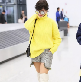 冬季毛衣选择多样,从领型到色彩皆可玩味。低领方便舒适,高领保暖且省去围巾。赵雅芝选择的这件明黄色毛衣亮度较高,若担心肤色问题,可如她一般将部分衣摆收入下装,既能调节比例,又降低色彩压迫感。