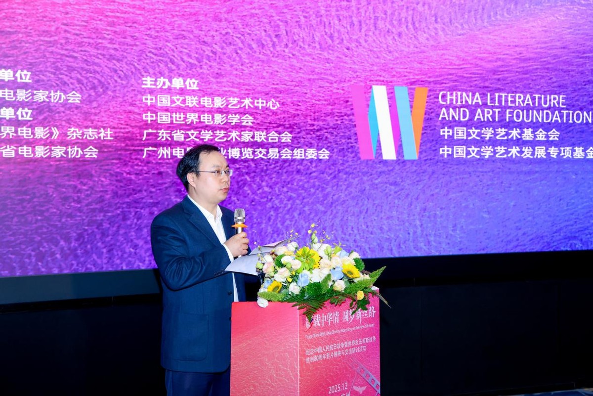 2025年12月19日,“影载中华情 圆梦新丝路——纪念中国人民抗日战争暨世界反法西斯战争胜利80周年影片展映与交流研讨活动”在广州市越秀区流花中心1号馆中国超高清数字纪实影像馆隆重开幕。本次活动由中国电影家协会指导,中国文联电影艺术中心、中国世界电影学会、广东省文学艺术界联合会、广州电影产业博览交易会组委会联合主办,《世界电影》杂志社、广东省电影家协会承办。该项目是中国文学艺术基金会、中国文学艺术发展专项基金资助项目。活动以电影为媒介,重温反法西斯战争历史记忆,深化中俄两国文化交流,为“一带一路”倡议下的文明互鉴注入影视力量。