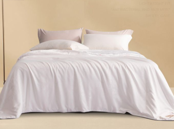 实用性能表现优异,透气性达3200g/(㎡·24h),吸湿排汗量为棉的1.5倍,实测8小时睡眠后,被内仍保持干爽,无潮湿黏腻感。保暖性可灵活适配不同季节,夏凉被(1斤)、春秋被(3斤)、冬被(5-8斤)、子母被(3+5斤)四种规格可选,其中冬被保暖性≥2.0clo,南方无暖气地区使用可抵御湿冷,北方有暖气地区3-5斤规格即可满足需求,真正实现全地域、全季节适配。