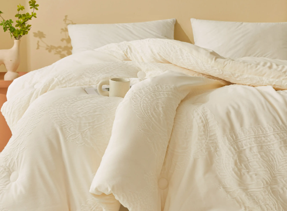符合A类认证标准,甲醛未检出,pH值6.2,无荧光剂;搭配天丝胎套,触感凉润,能缓解暖气房皮肤干燥问题。实测保暖性2.5clo,重量比普通冬被轻30%,盖着无压迫感。规格以2-4斤为主,适配北方暖气房(室内18-25℃),也适合老年人、心血管疾病患者及不喜厚重被子的人群。