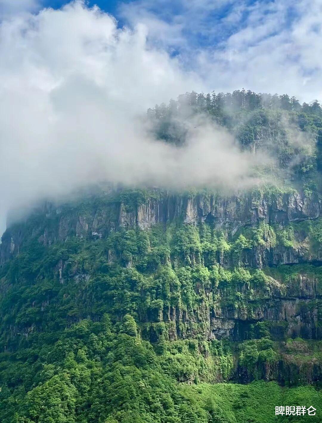 它不像峨眉山那样峰峦叠嶂,而是一张巨大的“方桌”平铺在天地之间。山顶平坦如削,四周悬崖绝壁,这种独特的地貌在全球都极为罕见。