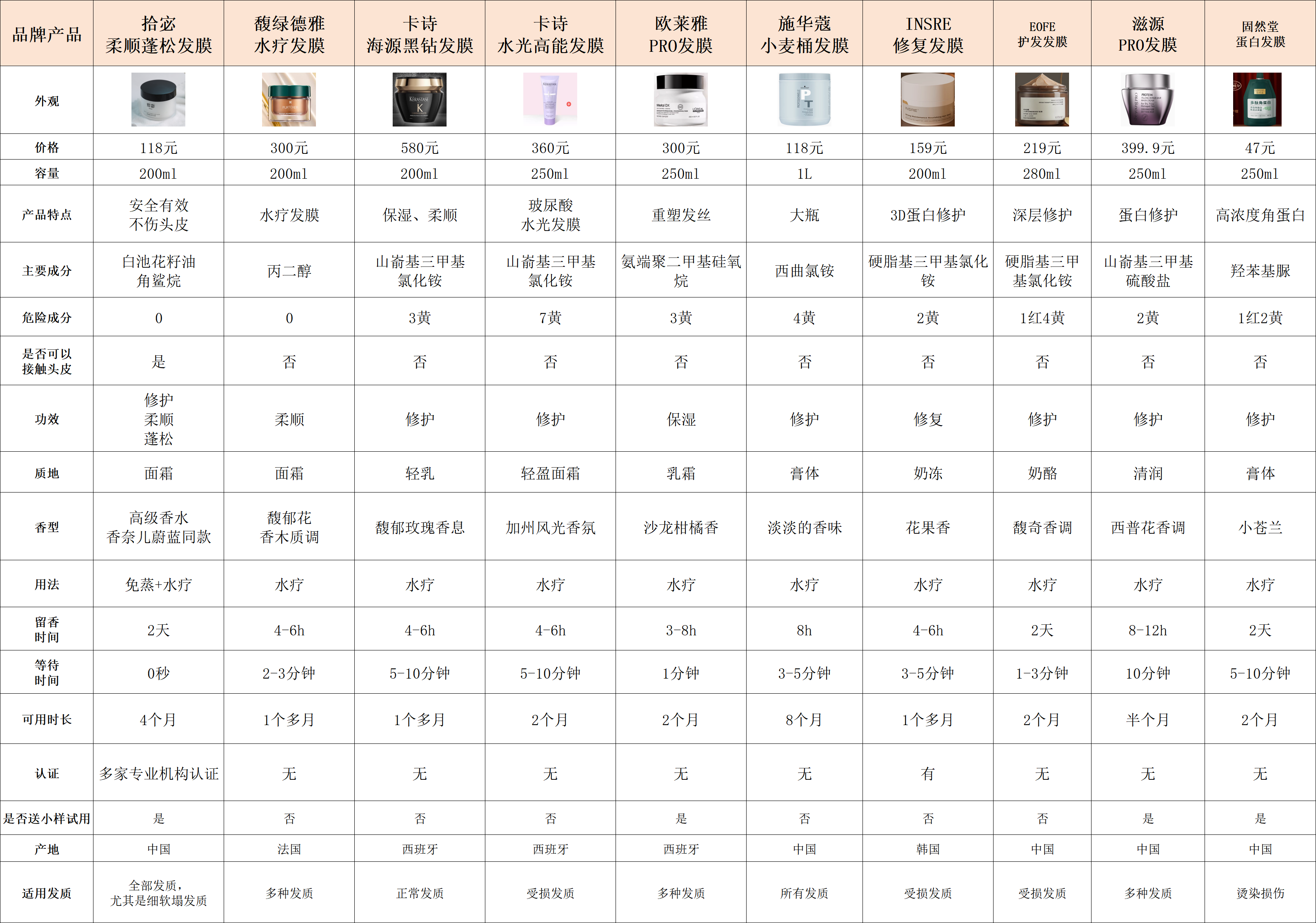以下是我实测过的发膜品牌: