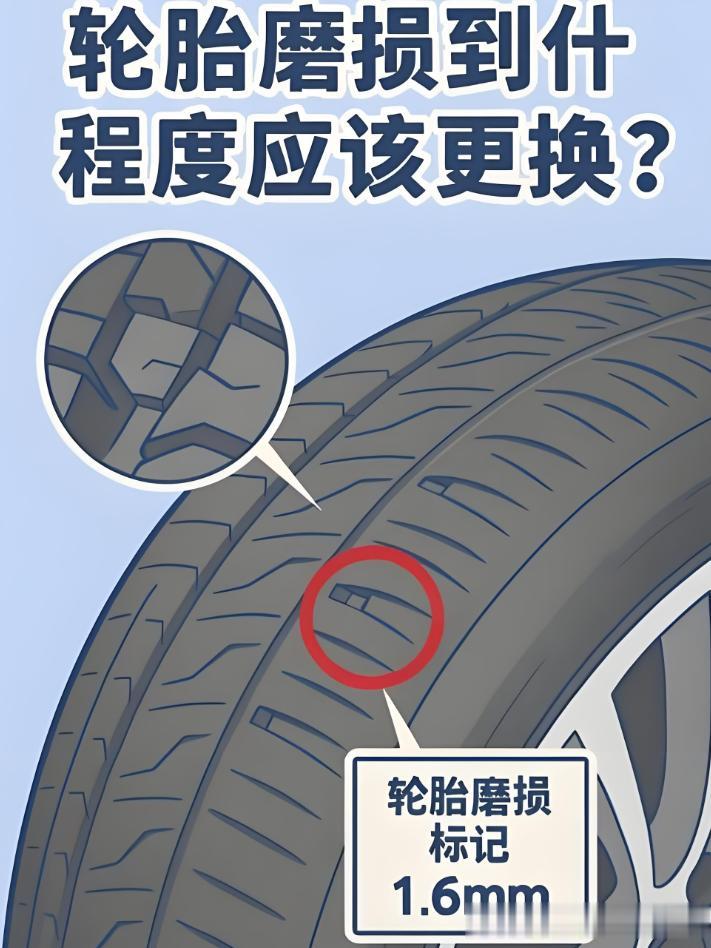 第一看胎纹深度,轮胎胎面上有个小凸起,那就是磨损标记,只要胎纹没磨到那个标记(大概1.6毫米),就还能继续用;要是磨到了,雨天抓地力会变差,就该换了。