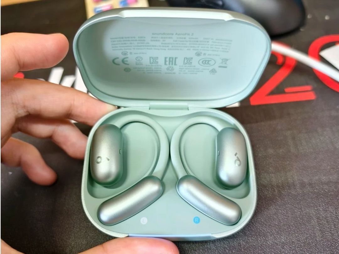 佩戴感也很好,单耳才 6.8g,轻得跟没戴似的,就算戴一下午处理工作,耳朵也不觉得压得慌;它那个ㄥ型 26° 的工学弧面设计也特贴心,刚好能贴住耳甲腔的轮廓,戴上去又稳又舒服,不会老往下掉;硅胶材质还软乎乎的,摸着手感特好,不管是上班戴、通勤戴,还是运动的时候戴,都合适。
