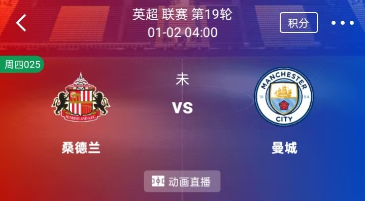 周四 025 英超:桑德兰VS曼彻斯特城