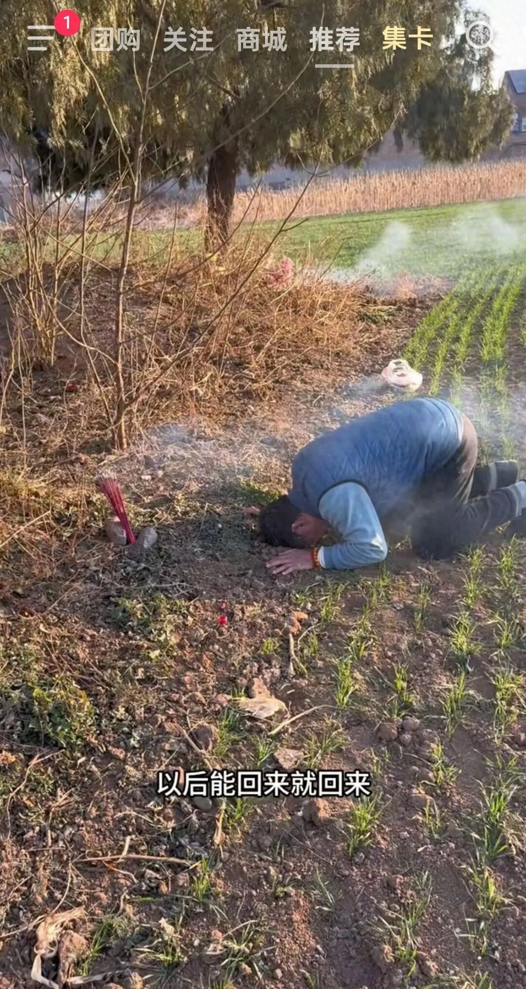 抵达先祖和亲人的坟前,李立群放慢脚步,神情渐渐变得肃穆。这片田间的坟茔静静矗立,没有华丽的装饰,唯有几簇枯草点缀其间。他逐一为父亲、大娘、奶奶以及大哥大嫂的坟前摆放祭品,小心翼翼地取出纸钱,轻轻铺在坟前点燃,火苗缓缓升起,细小的烟雾袅袅缭绕,随风轻轻飘散。随后,他又取出香火,双手捧着点燃,恭恭敬敬地弯腰祭拜,双手合十,默默伫立在坟前许久,仿佛在与故去的亲人诉说思念。