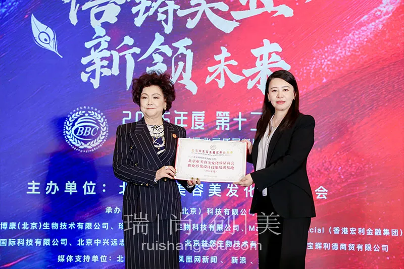 在峰会的重要环节,瑞尚创美被授予“北京市美容美发化妆品商会职业形象设计技能培训基地(2026年度)”荣誉称号。