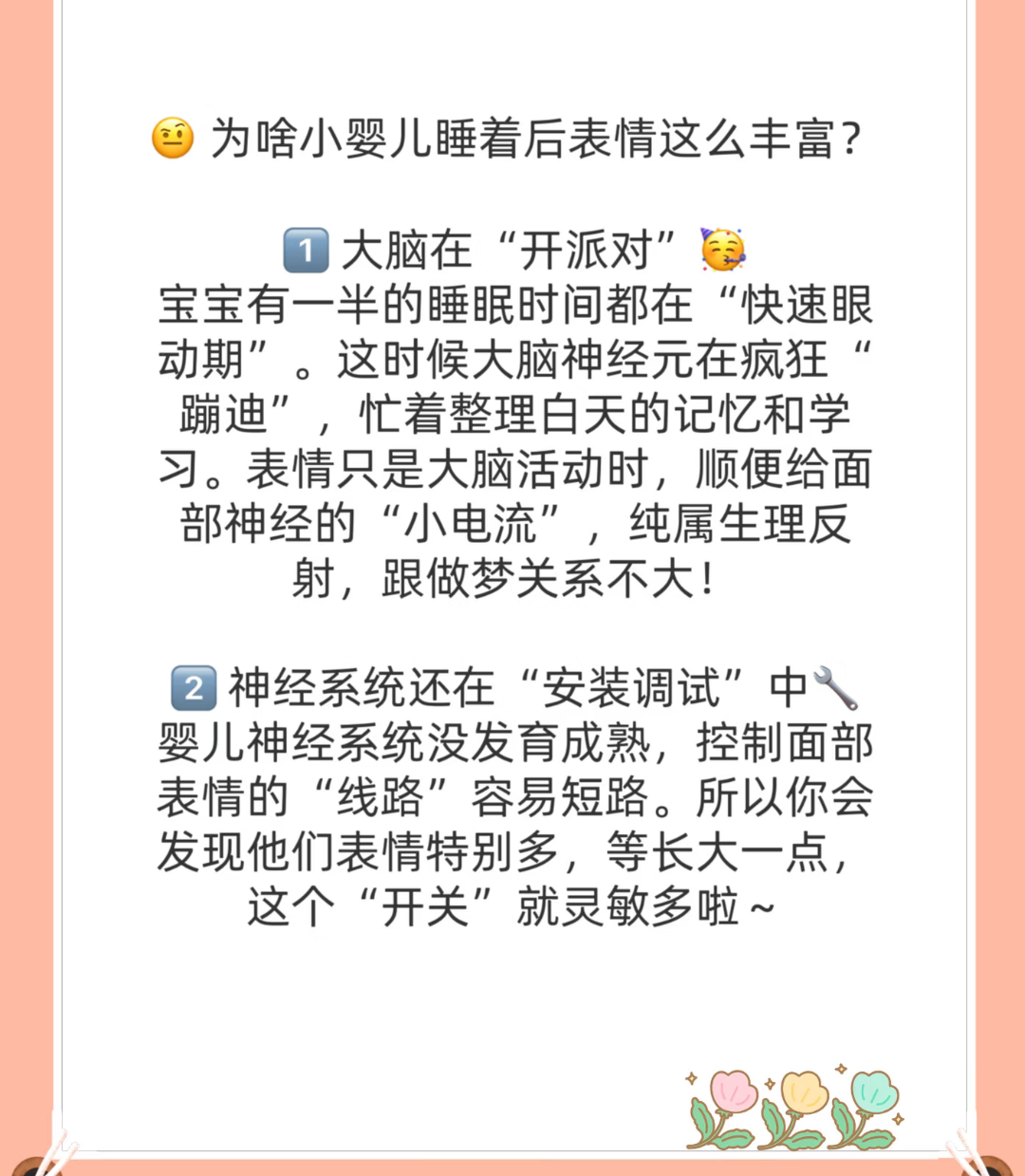 如果你也是一位新手妈妈,正在为宝宝睡梦中的那些小表情而焦虑,我想轻轻告诉你,没关系的,不用慌。你不需要每一次都冲过去抱起她,也不需要担心她是不是哪里不舒服。就在旁边静静地看着吧,看着这个小生命在梦里经历属于她的喜怒哀乐。