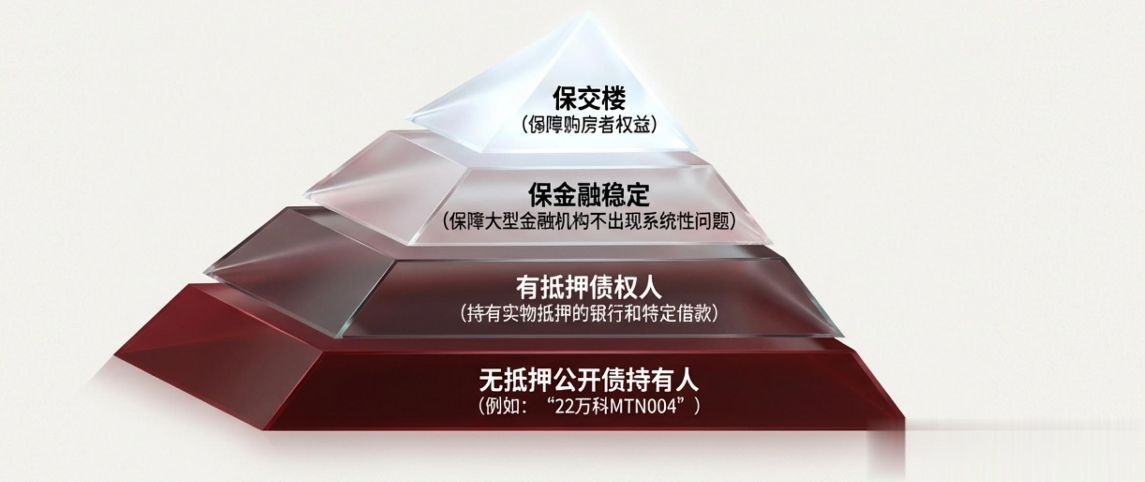 就算好似债权人内部,也有顺序。拿到实物抵押、强担保的银行和特定借款,天然排在前面。股东借款虽然形式上是内部支持,但在实操中往往配了优质资产抵押。真正像“22万科MTN004”这种无担保的公开市场债券,从一开始就是站在更靠后的位置。