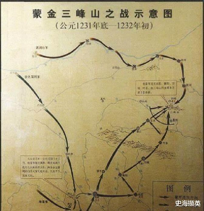 三峰山之战基本是拖雷独自完成的,本部四万军队加上窝阔台派来的一万军队,歼灭了金国15万主力,从整个蒙古灭金之战来说,东路斡赤斤几乎毫无作为,史书未记载,中路窝阔台围攻河中府城(今山西永济)打了两个月之久,拖雷军几乎就是孤军深入了。