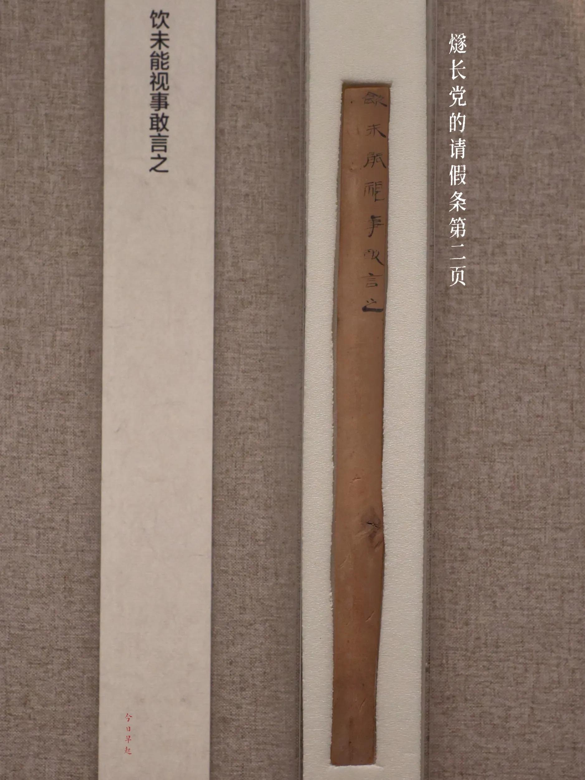 整个请假条写了五行字,其中四行半是漂亮的隶书——说明燧长“党”还喜欢练书法?非也。