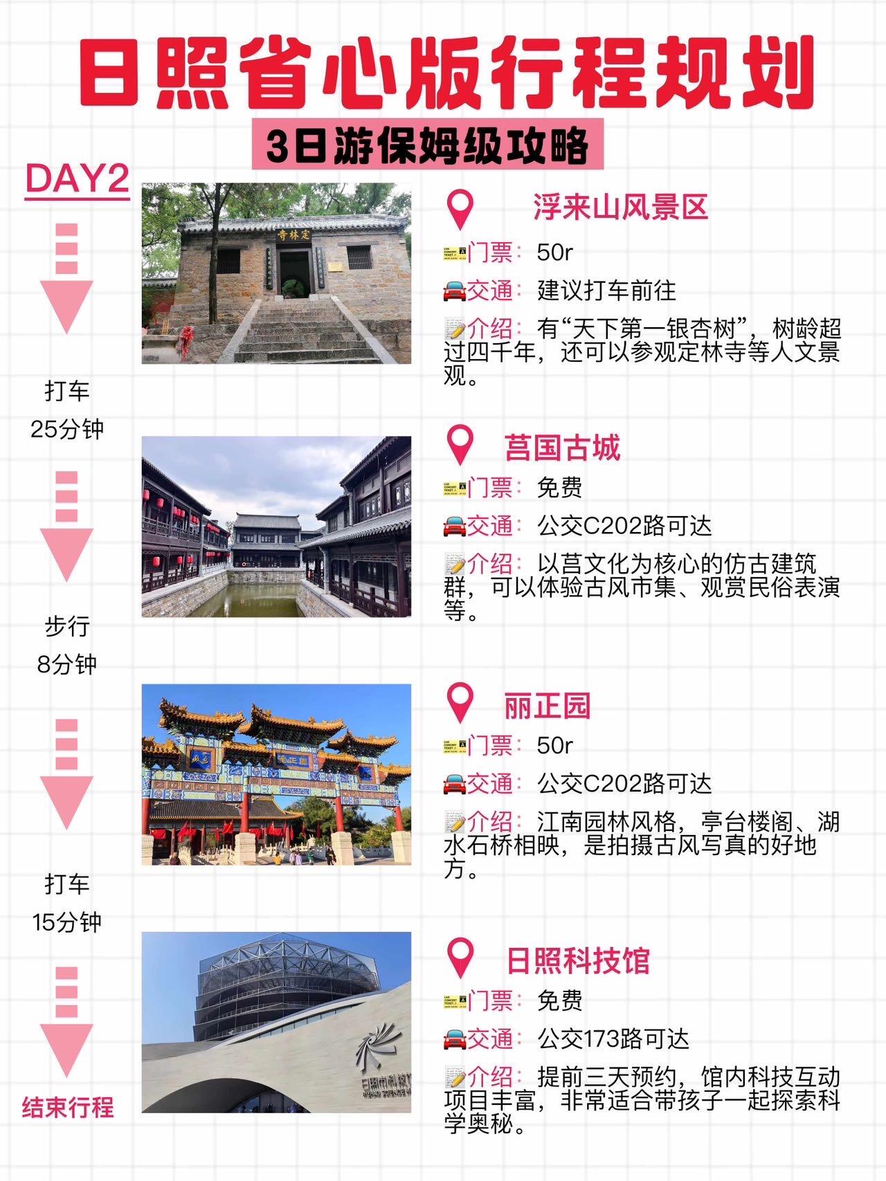 📌Day2在浮来山风景区感受了大自然🍃的宁静,莒国古城也很有韵味。丽正园的江南风格建筑,拍照巨美📷。