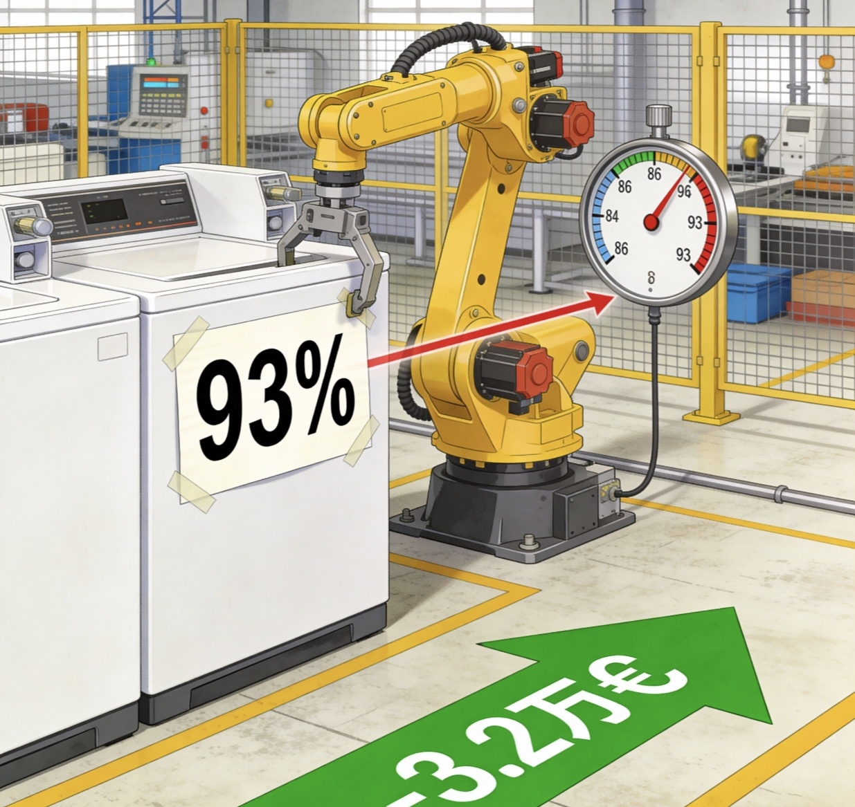 西门子坐落于德国的工厂开展了时长为6周的试点工作,把47页的PDF作业指导书,分解成12个步骤的流程,缺陷检出率从86%提高到93%,单台设备每一年可以节省3.2万欧元。