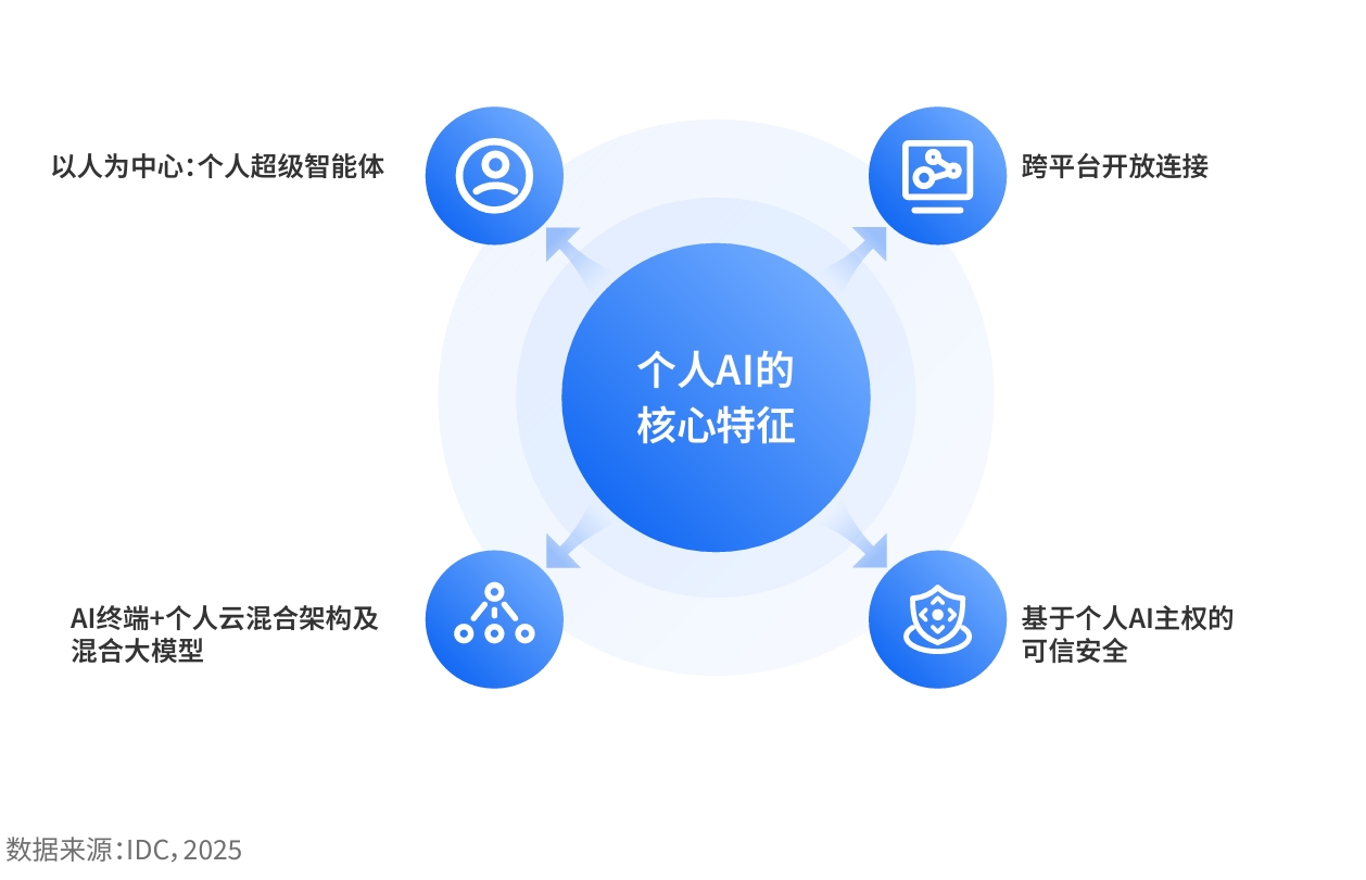 未来的个人AI不再是孤立的工具,而是以“一体多端”的超级中枢形态存在,通过智能体调度整合全场景资源,为用户提供“以人为中心”的个性化、安全化、无缝化智能服务。