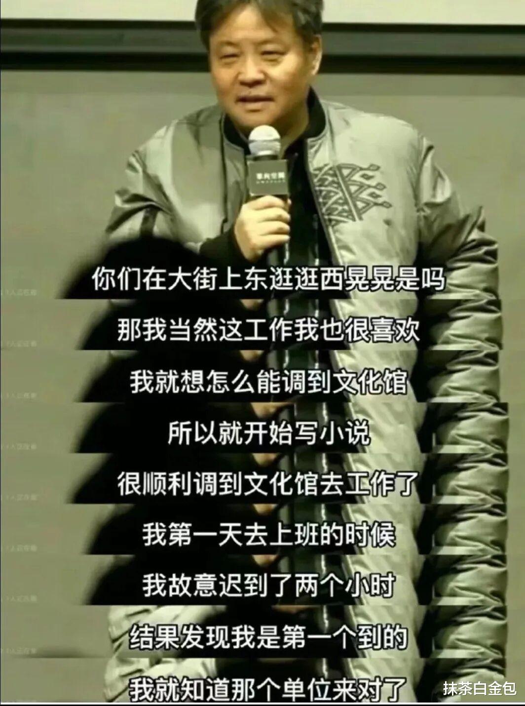 余华说他看到县文化馆的人每天在大街上游荡,心生羡慕,便开始创作小说。后来他如愿调入文化馆,上班第一天故意迟到两小时,却发现自己竟然还是第一个到的,于是窃喜“这单位来对了”。