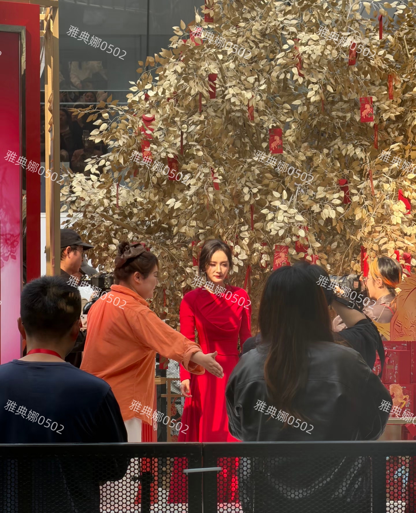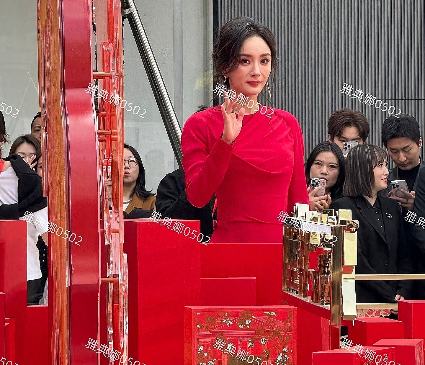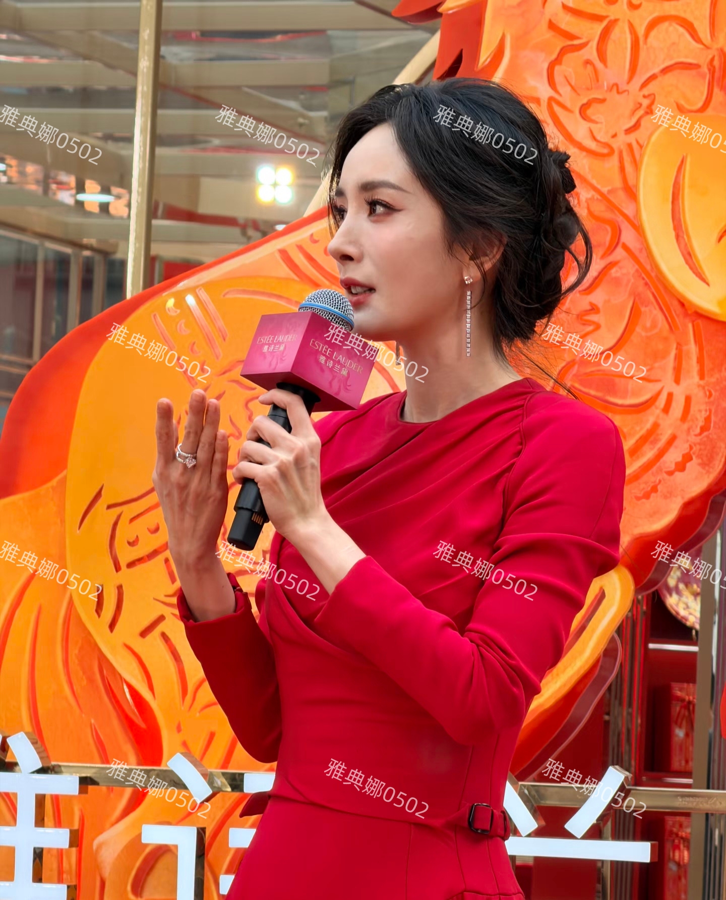 杨幂今日现身深圳万象城,出席雅诗兰黛的活动,梳着韩式温柔低盘发,穿着一身大红裙的杨幂一出场就让粉丝感受到了要过年的喜庆气氛。