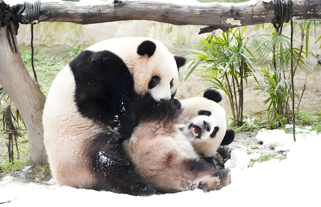 更有意思的是,现在的熊猫幼崽,简直是“熊界综艺天团”,个个性格鲜明、自带萌点。有的是“小魔丸”,追着同伴又扑又咬,战斗力爆表;有的是“甜妹担当”,全程躺平卖萌,眨巴着大眼睛就能圈粉无数;还有的是“拆家小能手”,把拜年用的福字、灯笼咬得稀碎,把奶爸的手套啃得面目全非,主打一个“真诚不配合”。
