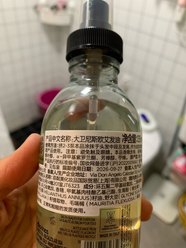 配方尚可,日常用没大问题。上周晒太阳后抹它,发丝没那么干得打结,这点还行。但我油头皮,抹完三小时头顶泛油光,成分表有好几种油脂,可能对油头不友好。据说稳定体系能防变质,但泛油光让我糟心。