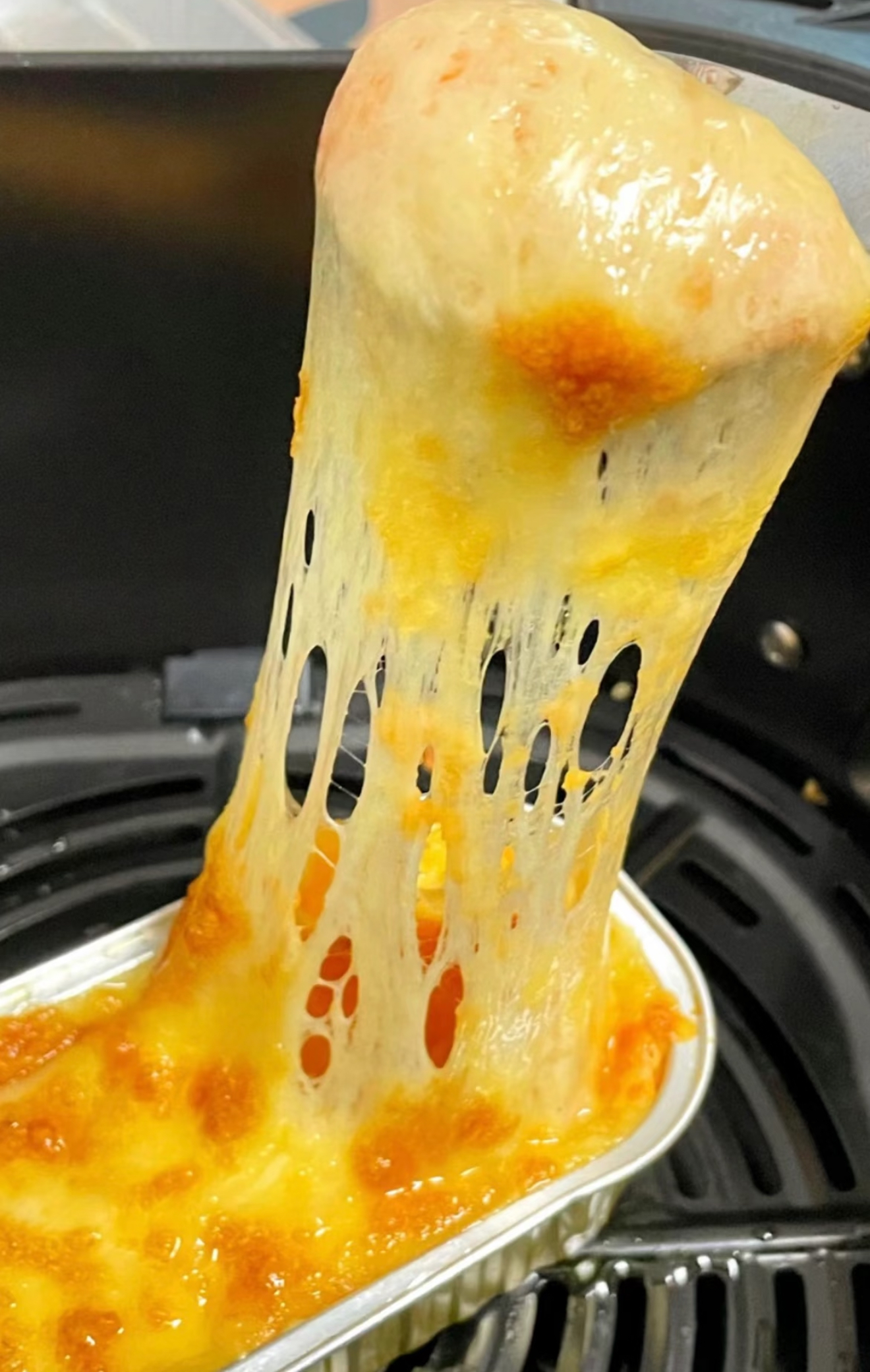 把装好芝士的红薯放回烤箱,180℃烤10 - 15分钟,直到芝士表面变得金黄,还冒着小泡泡,这时候芝士就已经完全融化,拉丝效果超好啦。要是用空气炸锅,160℃烤8 - 10分钟就行。