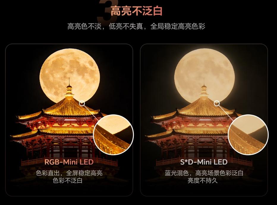 在深入剖析两者差异之前,我们先达成一个共识:无论是RGB-MiniLED还是SQD-MiniLED,核心目标都是打破传统MiniLED的画质瓶颈,进一步提升电视的色域覆盖、峰值亮度和色彩精准度,满足大家对沉浸式观影、专业级游戏的高品质需求。而实现这一目标的技术路径截然不同——就像同样是抵达目的地,有人选择稳健的普通公路,有人选择高效便捷的高速公路,路径不同,沿途的体验、花费的成本,自然也千差万别。其中,RGB-MiniLED的核心竞争力,就在于从光源源头完成了颠覆性革新,彻底打破了传统技术的局限,让画质与使用体验实现了双重飞跃。