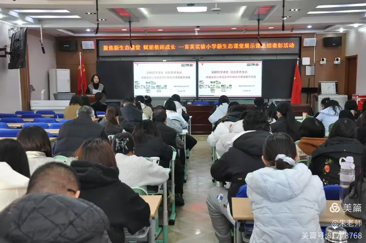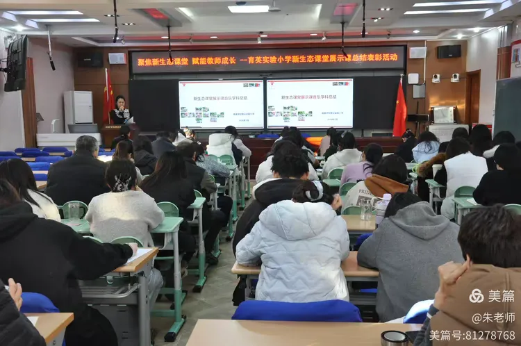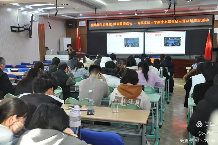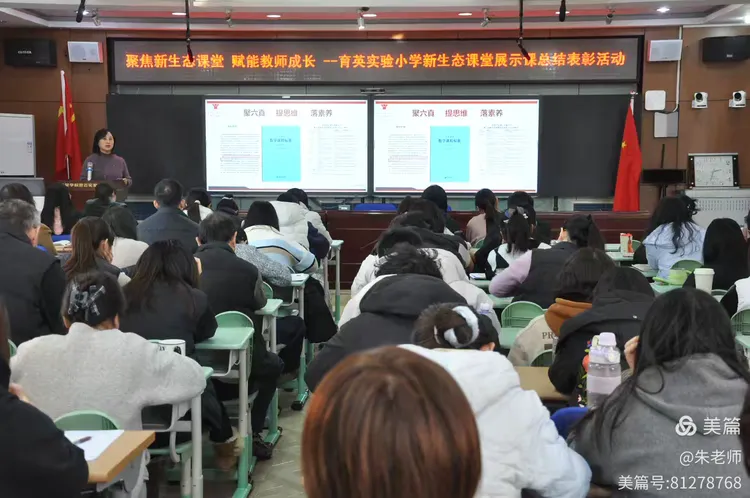各学科总结结束后,进入全校总结环节。此次新生态课堂展示活动成果丰硕:“六真” 理念在各学科落地生根,真情境源于生活、真问题引领深度、真探究注重实践、真对话激发碰撞、真应用促进迁移、真修正完善认知,AI 赋能与亮点创新让课堂焕发新活力;20 对师徒携手共进,团结协作的精神成为此次活动最宝贵的收获。