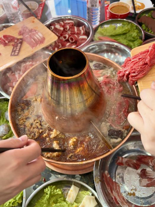 正宗潮汕清汤锅底,牛骨熬得奶白鲜醇。现切吊龙、匙仁纹理超赞,涮 8 秒就能吃,肉质嫩到弹牙,蘸沙茶酱绝配!手打牛肉丸 Q 弹爆汁,咬开全是肉香。