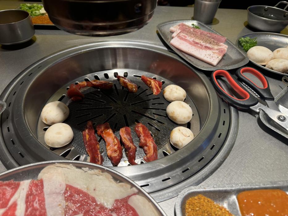 颜值与口味双在线的烤肉店,黑牛肋条肥瘦相间,烤得滋滋冒油,裹上生菜 + 蒜片 + 辣白菜,一口超满足。照烧鸡腿饭酱汁浓郁,米饭粒粒分明,香到舔盘。