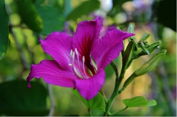 紫荆的文化基因,早已深埋在中华文明的基因图谱里。南朝梁吴均《续齐谐记》中,田氏三兄弟分家,庭中紫荆树即刻枯死;兄弟重归于好,树木枯而复荣、繁花满枝。“三荆同株” 由此成为手足情深、家庭和睦的文化符号,历经千年而不衰。陆机诗云“三荆欢同株,四鸟悲异林”,李白叹“田氏仓促骨肉分,青天白日摧紫荆”,韦应物见紫荆而忆故人,无数文人墨客以紫荆寄情,将亲情、乡情、家国情熔铸于花木之中,让紫荆从庭院之花,升华为民族情感的文化载体。