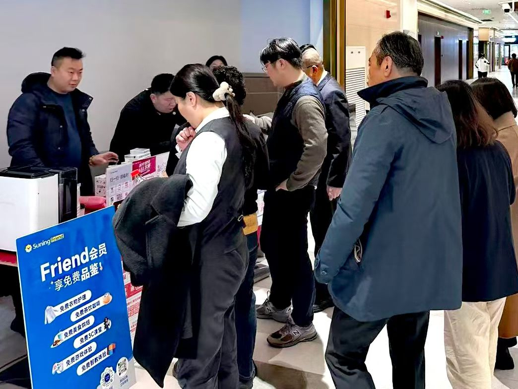 在政企团购会现场,苏宁易购通过现场驻点、搭建临时样板间,实景还原不同家电产品的使用场景,引入冰箱、洗衣机、电视、空调、热水器、烟灶、净水器、洗碗机等家电产品,并提供产品讲解、优惠补贴申领、旧机回收和上门估值等一站式服务。除了家电的展示和体验,现场还融入本地化服务,如老旧家电免费安全监测、免费衣物护理、免费家电清洗、免费手机贴膜、美食品鉴等,让消费者得便利、更省心。
