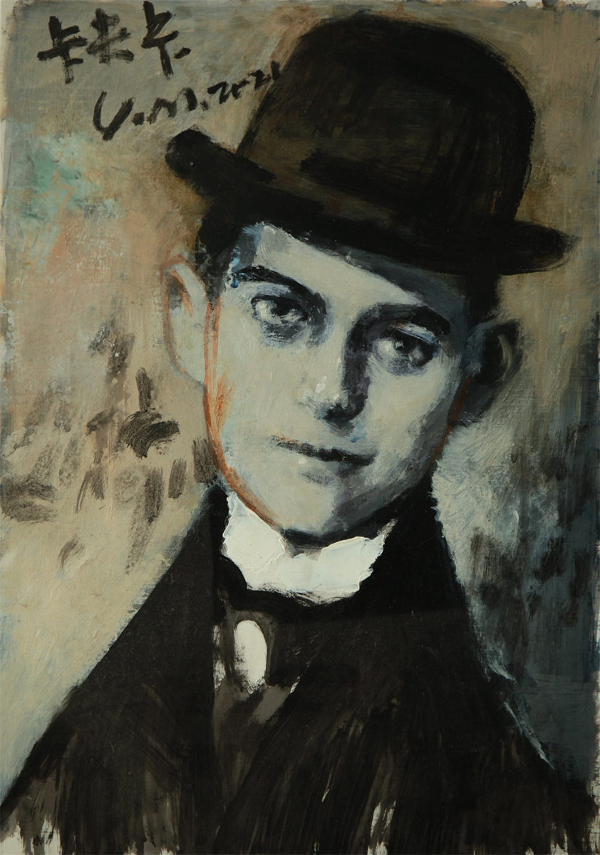他的意境是时代的微光,百幅肖像织就了精神的星河。站在画前,你会看见文学家的笔锋藏在眼角,音乐家的旋律淌在眉梢,哲学家的思考凝在指尖——他们不再是遥远的传说,而是有血有肉的“故人”,如暗夜中的光,照亮过往,也温暖当下。这意境里,有“面对面”的亲切,有“群星闪耀”的壮阔,更有袁明先生对艺术的虔诚:不追潮流、不逐浮华,只以匠心解读精神,让肖像画成为跨越时空的精神桥梁。