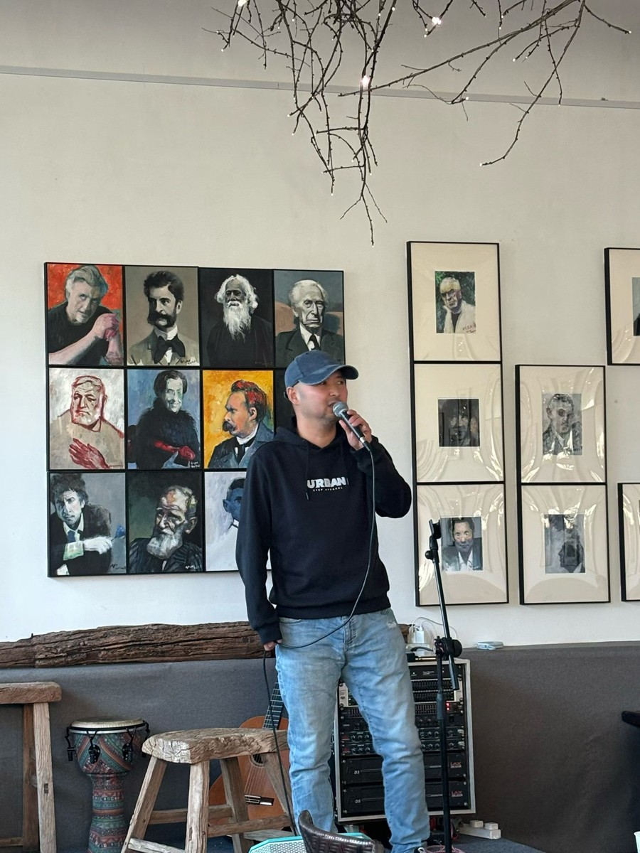 他的笔触是灵魂的探针,每一道刻画都藏着读懂人心的智慧。勾勒眉峰时,笔锋如细语,藏着文学家的深邃、音乐家的灵动、哲学家的沉思;刻画眼神时,墨色如凝眸,有直面惨淡人生的勇气,有开辟荆棘之路的坚毅;描摹手势时,线条如倾诉,或握拳藏着执着,或舒展带着从容。正如他所言,肖像画的神奇在于“传递心理状态,直抵灵魂深处”,这笔触没有炫技的张扬,只有“春种秋收”的踏实,在0.01%的创新里,让每幅作品都有了直击人心的力量。