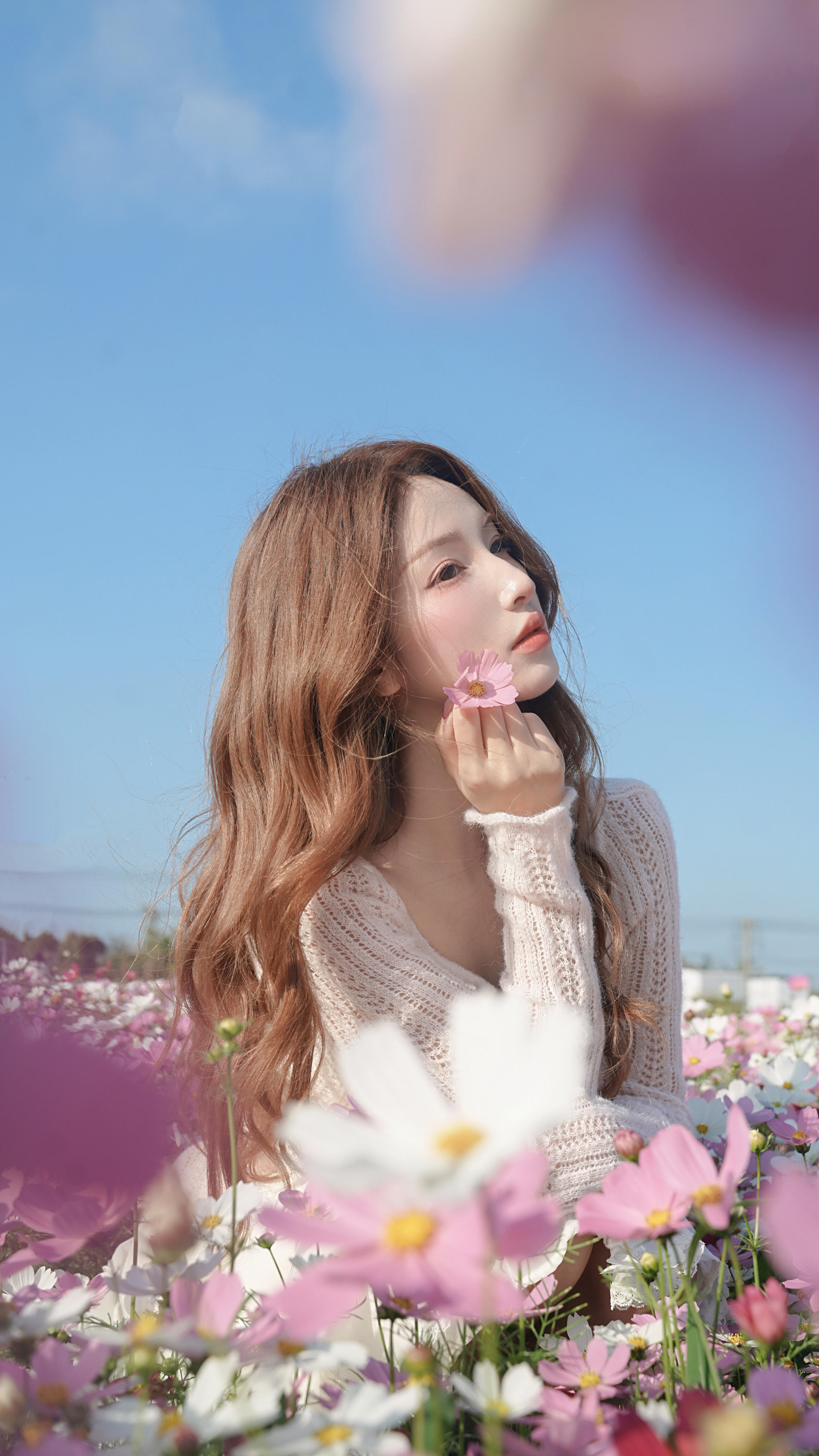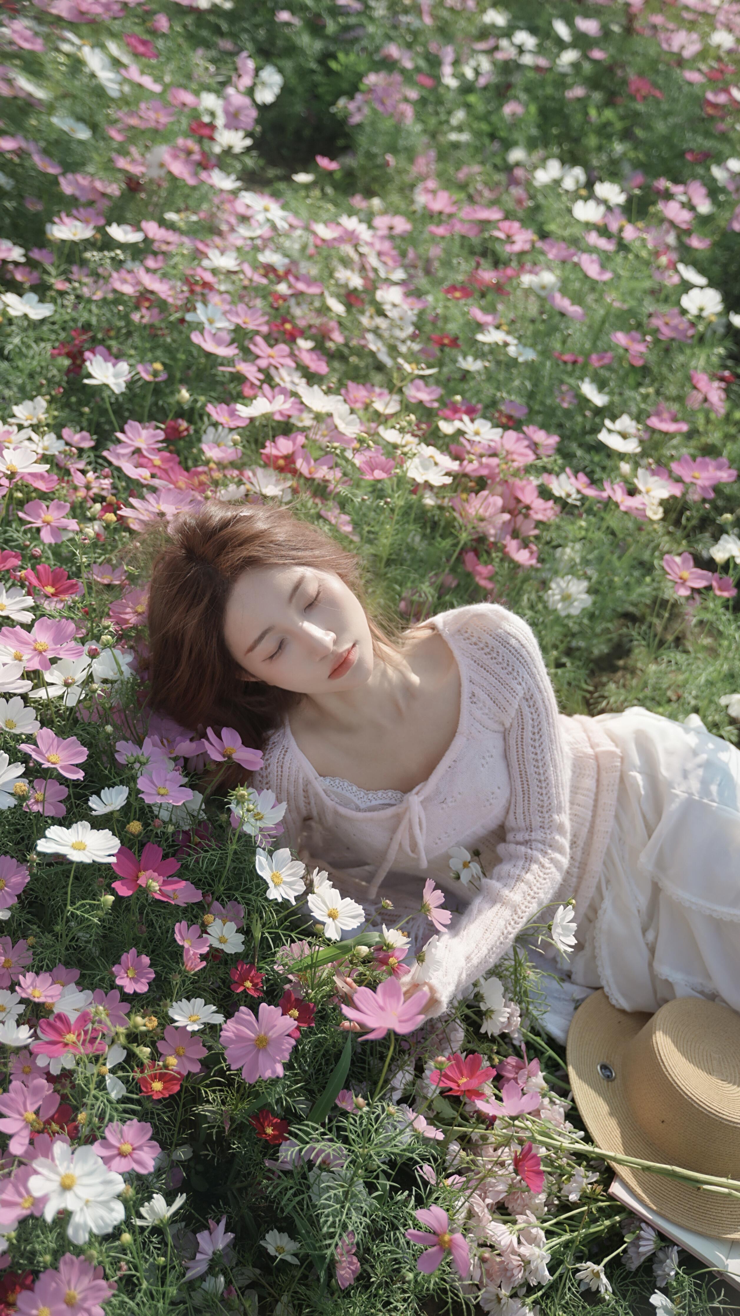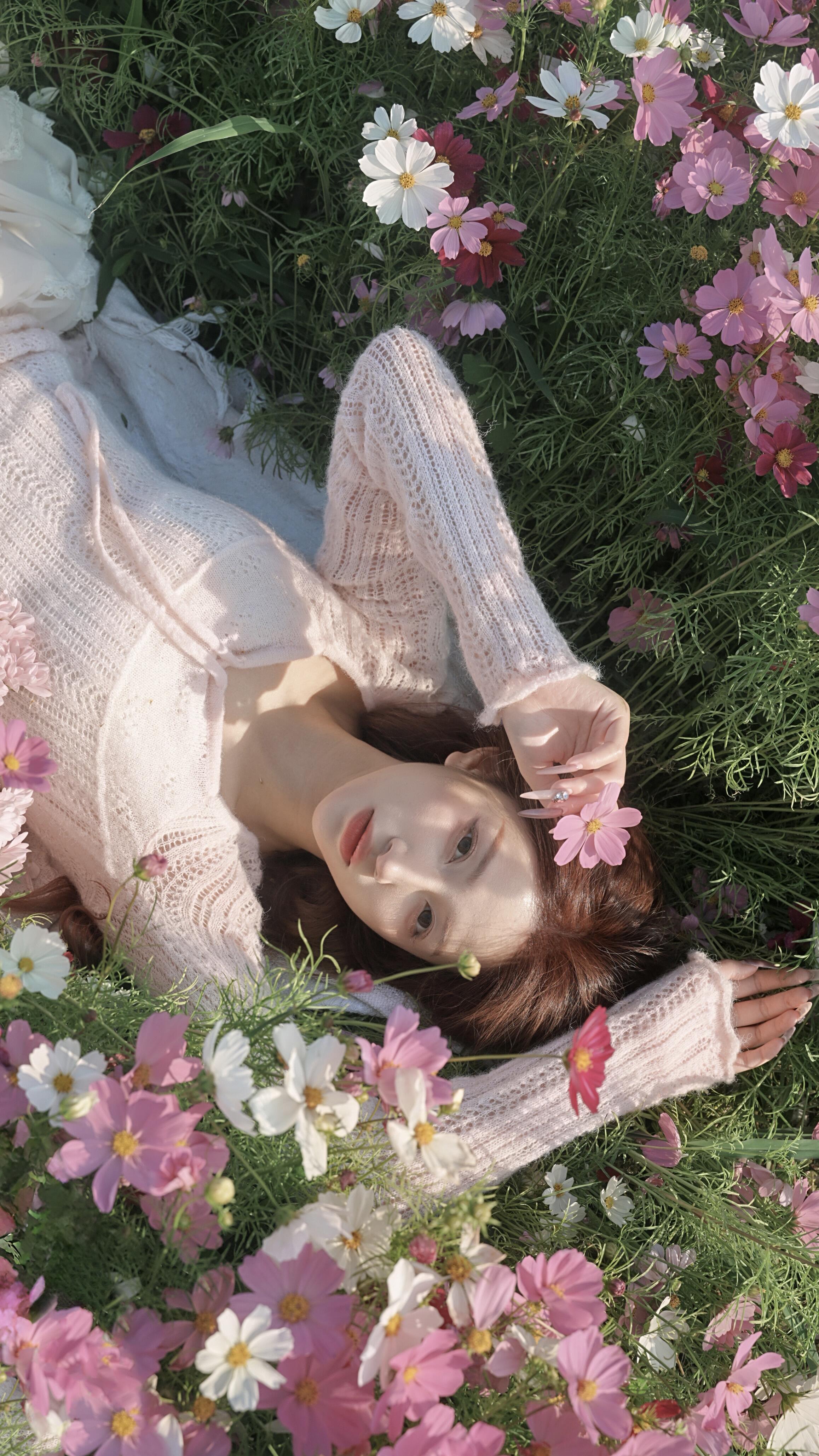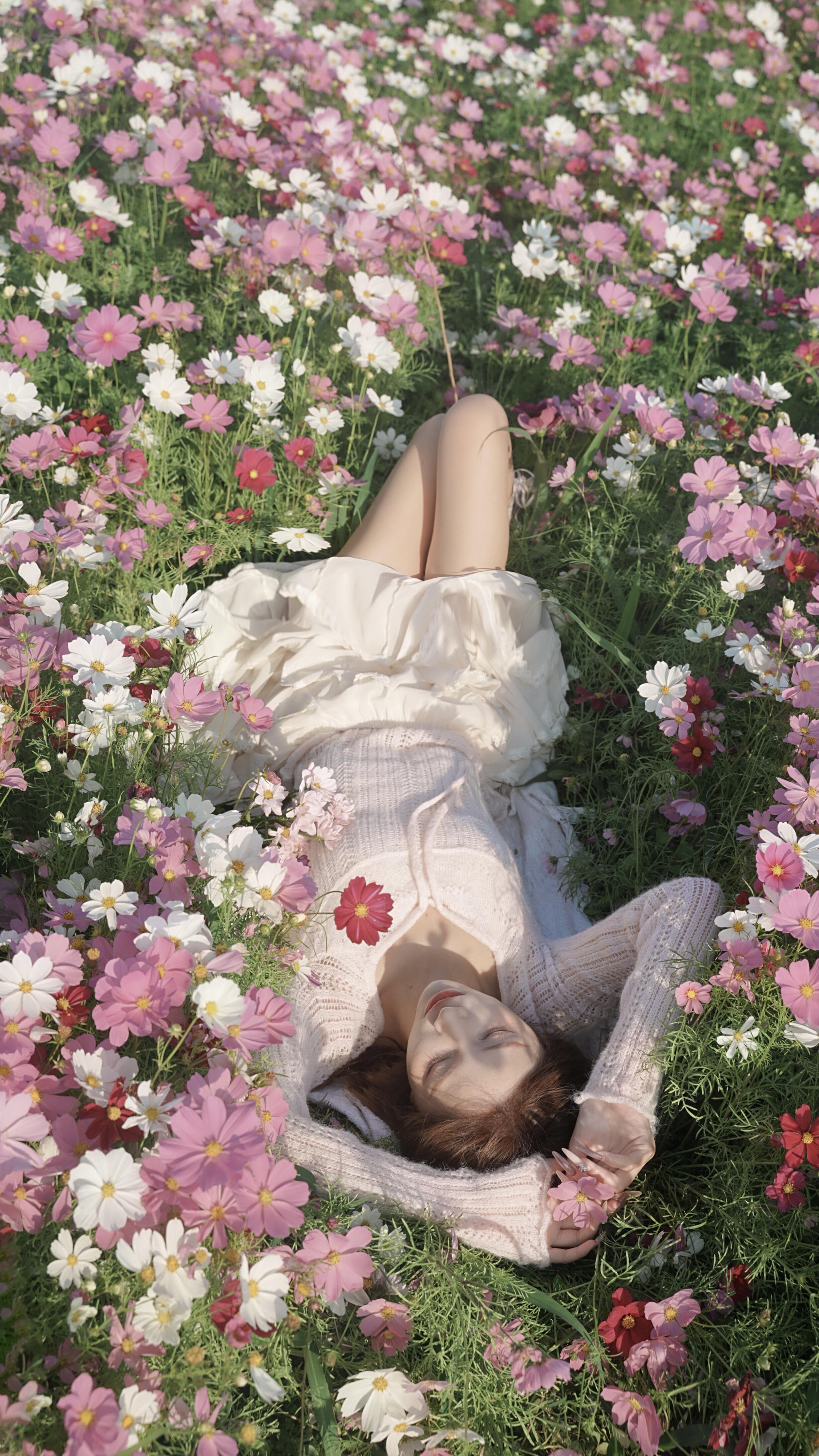 二、视角创新:打破常规构图常规的平拍与仰拍视角已难以带来惊喜,尝试特殊的拍摄角度能让作品脱颖而出。高角度俯拍可展现花海的壮阔,让人物成为花海中的点缀,营造“上帝视角”的独特感;低角度贴地拍摄能利用花茎的线条引导视线,增强画面的纵深感;侧方斜拍可捕捉人物与花海的互动瞬间,增加画面的动态感。