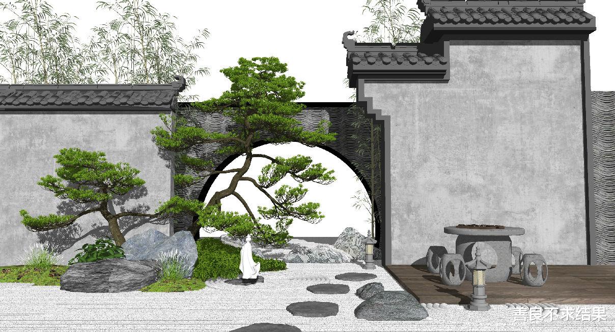 第四款,微景观景墙。同样是中式,同样是山水,可以用不同的表现形式。
