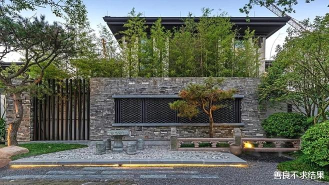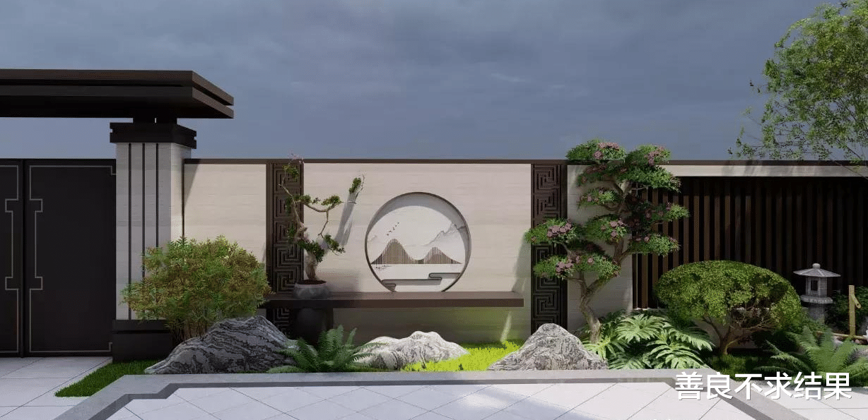 第三款,瓷砖、石材景墙。中式庭院,比较喜欢山水景墙的设计。一个合适的图案,可以用瓷砖景墙来表现出来,后期打理也比较方便。不会积灰!