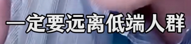 择其一视频内容,即可窥见本质。如下图,“一定要远离低端人群”就是其论述特征之典型,如此便凸显了其逻辑与论述的诸多问题:
