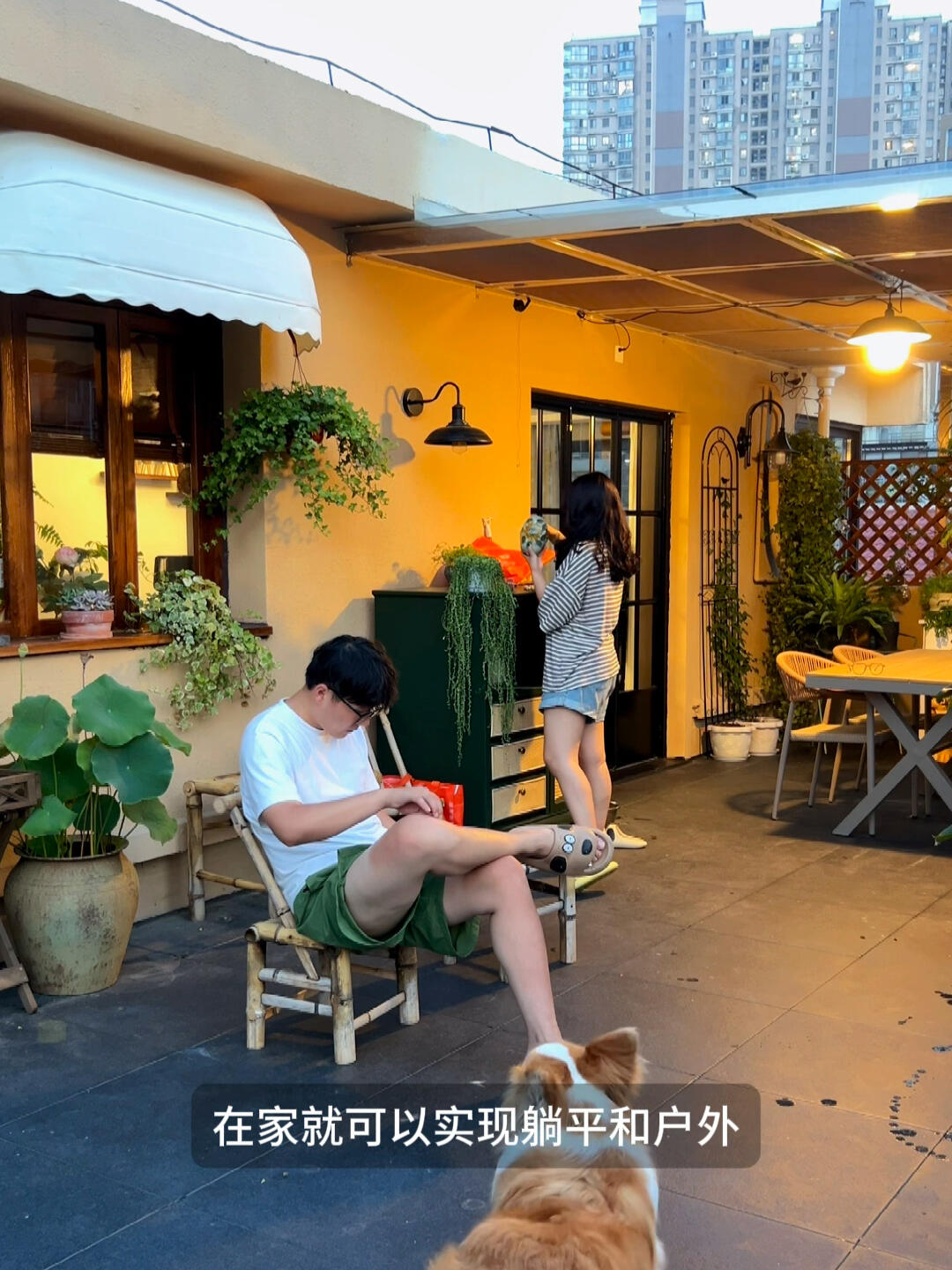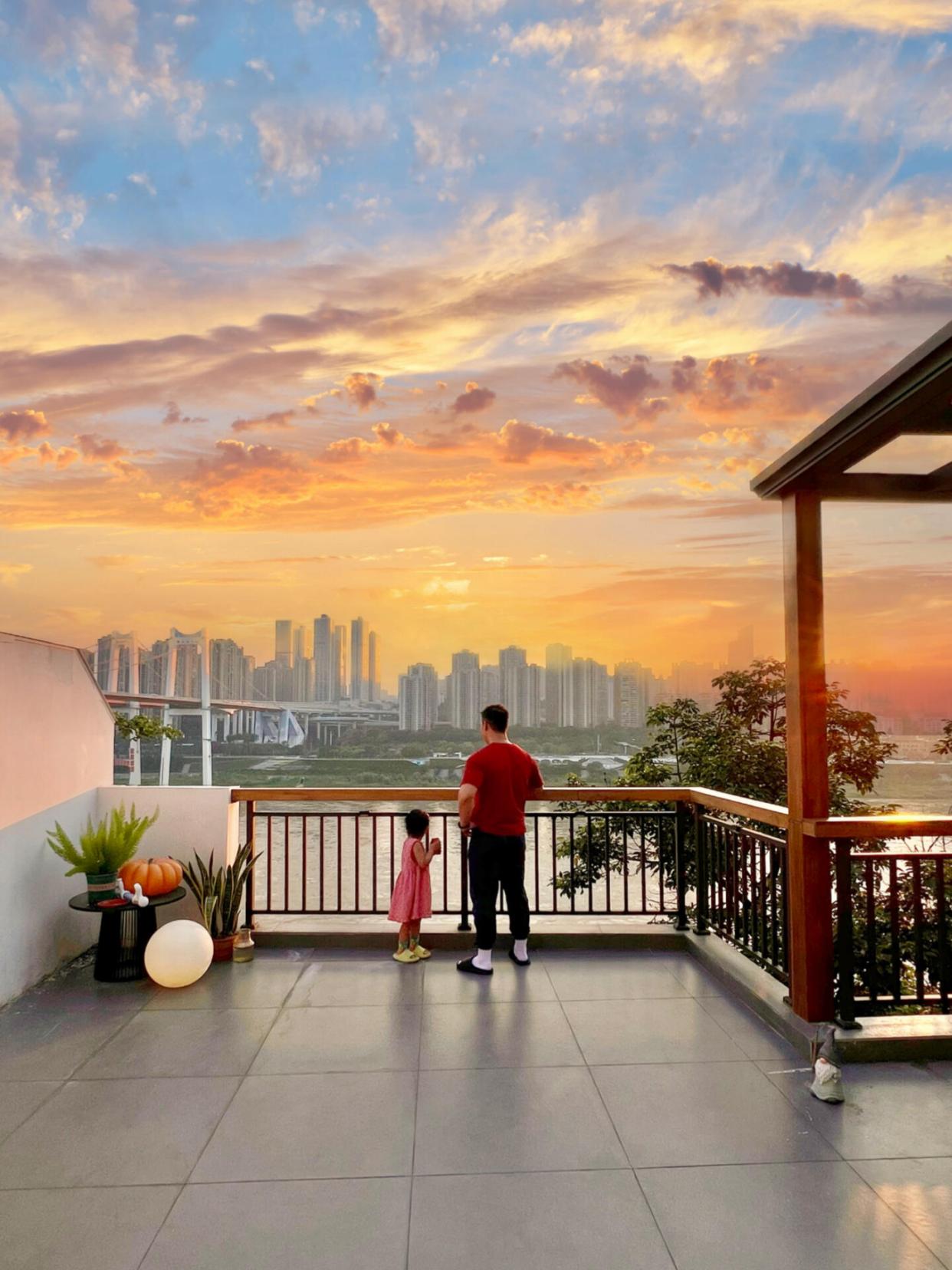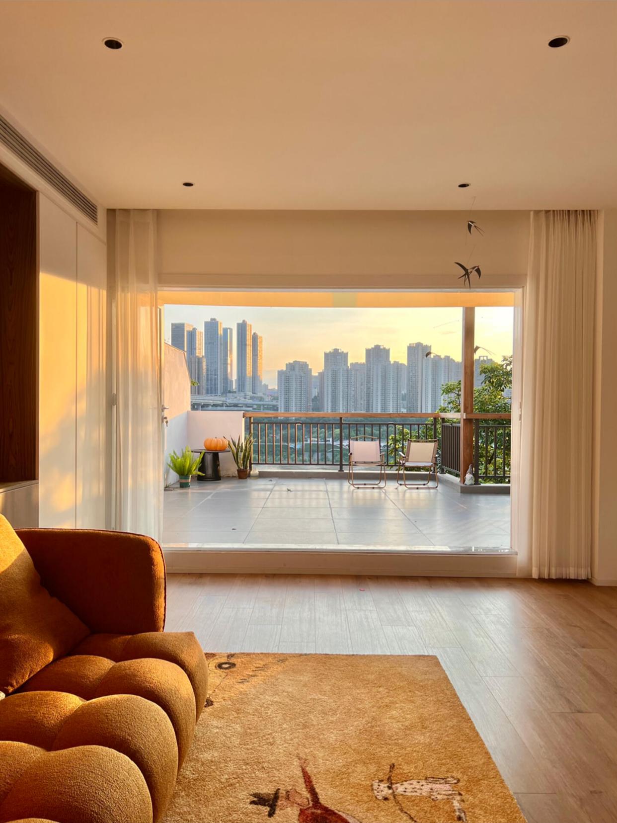 在露台春天有花看 ,夏天纳凉看电影,秋天烤肉煮火锅,冬天围炉煮茶晒太阳,还能随时晾晒东西,这样的房子真的是捡着宝了。