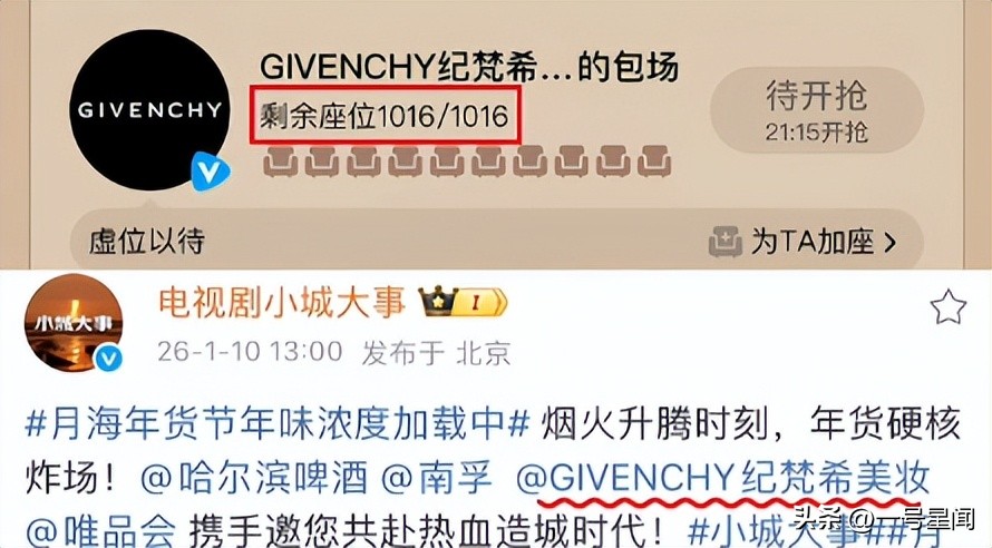 该品牌方为了支持颖宝这个代言人,还积极地给《小城大事》做宣传,并且还进行了云包场。