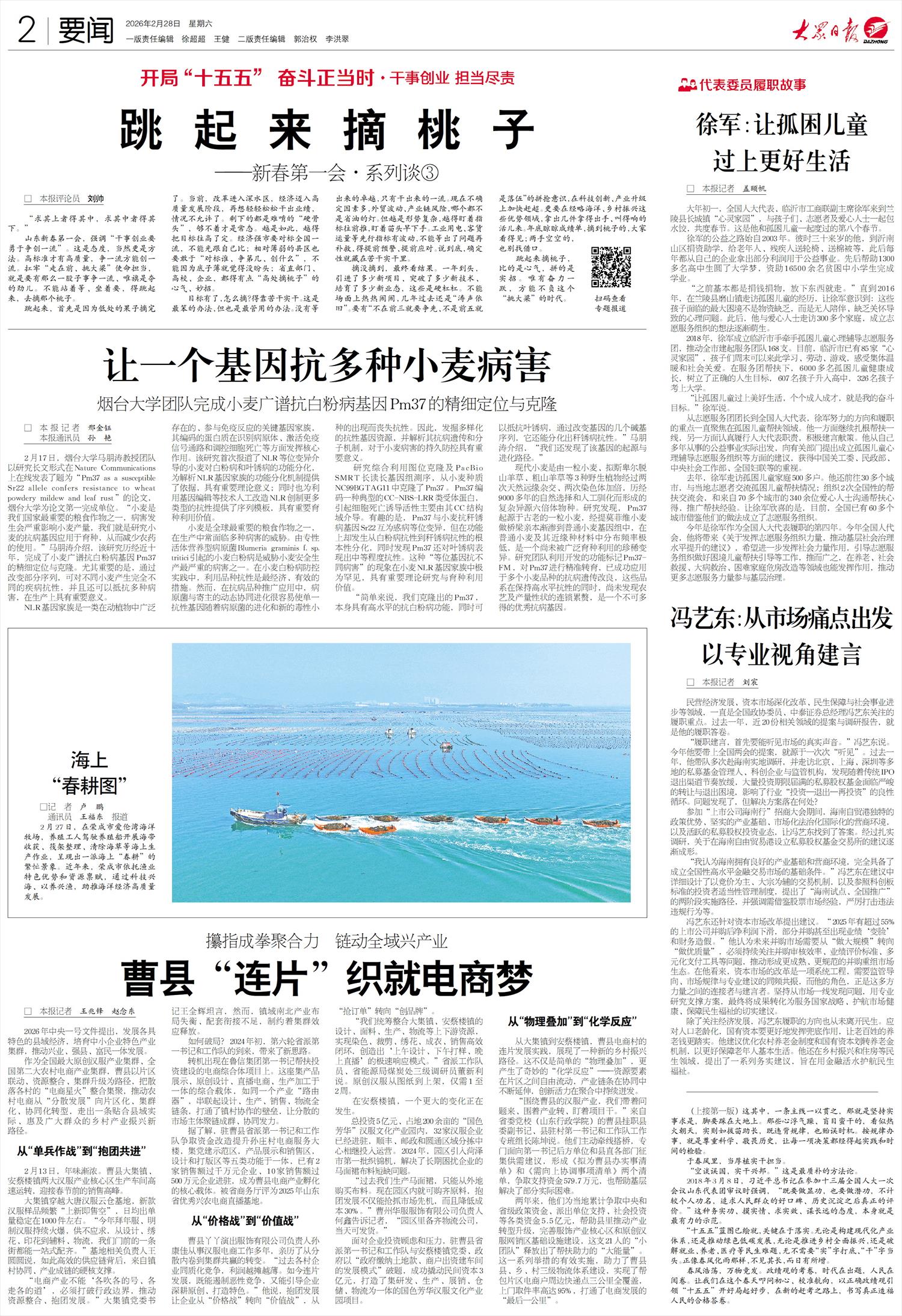 □ 本报记者 王兆锋 赵念东 2026年中央一号文件提出,发展各具特色的县域经济,培育中小企业特色产业集群,推动兴业、强县、富民一体发展。 作为全国最大原创汉服产业集群、全国第二大农村电商产业集群,曹县以片区联动、资源整合、集群升级为路径,把散落各村的“电商星火”整合集聚,推动农村电商从“分散发展”向片区化、集群化、协同化转型,走出一条贴合县域实际、惠及广大群众的乡村产业振兴新路径。从“单兵作战”到“抱团共进” 2月13日,年味渐浓。曹县大集镇、安蔡楼镇两大汉服产业核心区生产车间高速运转,迎接春节前的销售高峰。 大集镇穿越大唐汉服云仓基地,新款汉服样品频繁“上新即售空”,日均出单量稳定在1000件左右。“今年拜年服、明制汉服持续火爆,供不应求,从设计、绣花、印花到辅料、物流,我们门前的一条街都能一站式配齐。”基地相关负责人王圆圆说,如此高效的供应链背后,来自镇村协同、产业成链的硬核支撑。 “电商产业不能‘各吹各的号、各走各的道’,必须打破行政边界,推动资源整合、抱团发展。”大集镇党委书记王全辉坦言,然而,镇域南北产业布局失衡、配套衔接不足,制约着集群效应释放。 如何破局?2024年初,第六轮省派第一书记和工作队的到来,带来了新思路。 转机出现在鲁信集团第一书记帮扶投资建设的电商综合体项目上。这座集产品展示、原创设计、直播电商、生产加工于一体的综合载体,如同一个产业“路由器”,串联起设计、生产、销售、物流全链条,打通了镇村协作的壁垒,让分散的市场主体聚链成群、协同发力。 据了解,驻曹县省派第一书记和工作队争取资金改造提升孙庄村电商服务大楼,集党建示范区,产品展示和销售区,设计和打版区等五类功能于一体,已有2家销售额过千万元企业、10家销售额过500万元企业进驻,成为曹县电商产业孵化的核心载体。被省商务厅评为2025年山东省优秀兴农电商直播基地。从“价格战”到“价值战” 曹县丫丫演出服饰有限公司负责人孙康佳从事汉服电商工作多年,亲历了从分散内卷到集群共赢的转变。“过去各村企业同质化竞争,利润越摊越薄。如今连片发展,既能遏制恶性竞争,又能引导企业深耕原创、打造特色。”他说,抱团发展让企业从“价格战”转向“价值战”,从“抢订单”转向“创品牌”。 “我们统筹整合大集镇、安蔡楼镇的设计、面料、生产、物流等上下游资源,实现染色、裁剪、绣花、成衣、销售高效闭环,创造出‘上午设计、下午打样、晚上直播’的极速响应模式。”省派工作队员、省能源局煤炭处三级调研员董新利说。原创汉服从图纸到上架,仅需1至2周。 在安蔡楼镇,一个更大的变化正在发生。 总投资5亿元、占地200余亩的“国色芳华”汉服文化产业园内,32家汉服企业已经进驻,顺丰、邮政和圆通区域分拣中心相继投入运营。2024年,园区引入菏泽市第一批织锦机,解决了长期困扰企业的马面裙布料短缺问题。 “过去我们生产马面裙,只能从外地购买布料。现在园区内就可购齐原料,抱团发展不仅能抢抓市场先机,而且降低成本30%。”曹州华服服饰有限公司负责人何鑫告诉记者,“园区里备齐物流公司,当天可发货。” 面对企业投资顾虑和压力,驻曹县省派第一书记和工作队与安蔡楼镇党委、政府以“政府缴纳土地款、商户出资建车间的发展模式”破题,成功撬动民间资本3亿元,打造了集研发、生产、展销、仓储、物流为一体的国色芳华汉服文化产业园项目。从“物理叠加”到“化学反应” 从大集镇到安蔡楼镇,曹县电商村的连片发展实践,展现了一种新的乡村振兴路径。这不仅是简单的“物理叠加”,更产生了奇妙的“化学反应”——资源要素在片区之间自由流动,产业链条在协同中不断延伸,创新活力在聚合中持续迸发。 “围绕曹县的汉服产业,我们带着问题来、围着产业转、盯着项目干。”来自省委党校(山东行政学院)的曹县挂职县委副书记、县驻村第一书记和工作队工作专班组长陈坤说。他们主动牵线搭桥,专门面向第一书记后方单位和县直各部门征集供需建议,形成《拟为曹县办实事清单》和《需向上协调事项清单》两个清单,争取支持资金579.7万元,也帮助基层解决了部分实际困难。 两年来,他们为当地累计争取中央和省级政策资金、派出单位支持、社会投资等各类资金5.5亿元,帮助县里推动产业转型升级,完善服饰产业核心区和原创汉服网销区基础设施建设,这支21人的“小团队”释放出了帮扶助力的“大能量”。这一系列举措的有效实施,助力了曹县县、乡、村三级物流体系建设,实现了帮包片区电商户周边快递点三公里全覆盖,上门取件率高达95%,打通了电商发展的“最后一公里”。