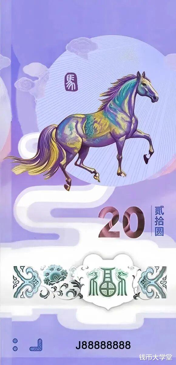 钞的设计远不如币,没有骏马的气势,前腿设计杂乱,和龙钞相比,差的不是一点点;设计真是偷懒了,拿蛇年的底片换了个三角眼的马;马钞设计低于预期。反之,原本关注度不高的马币,却是收获了不少的好评: