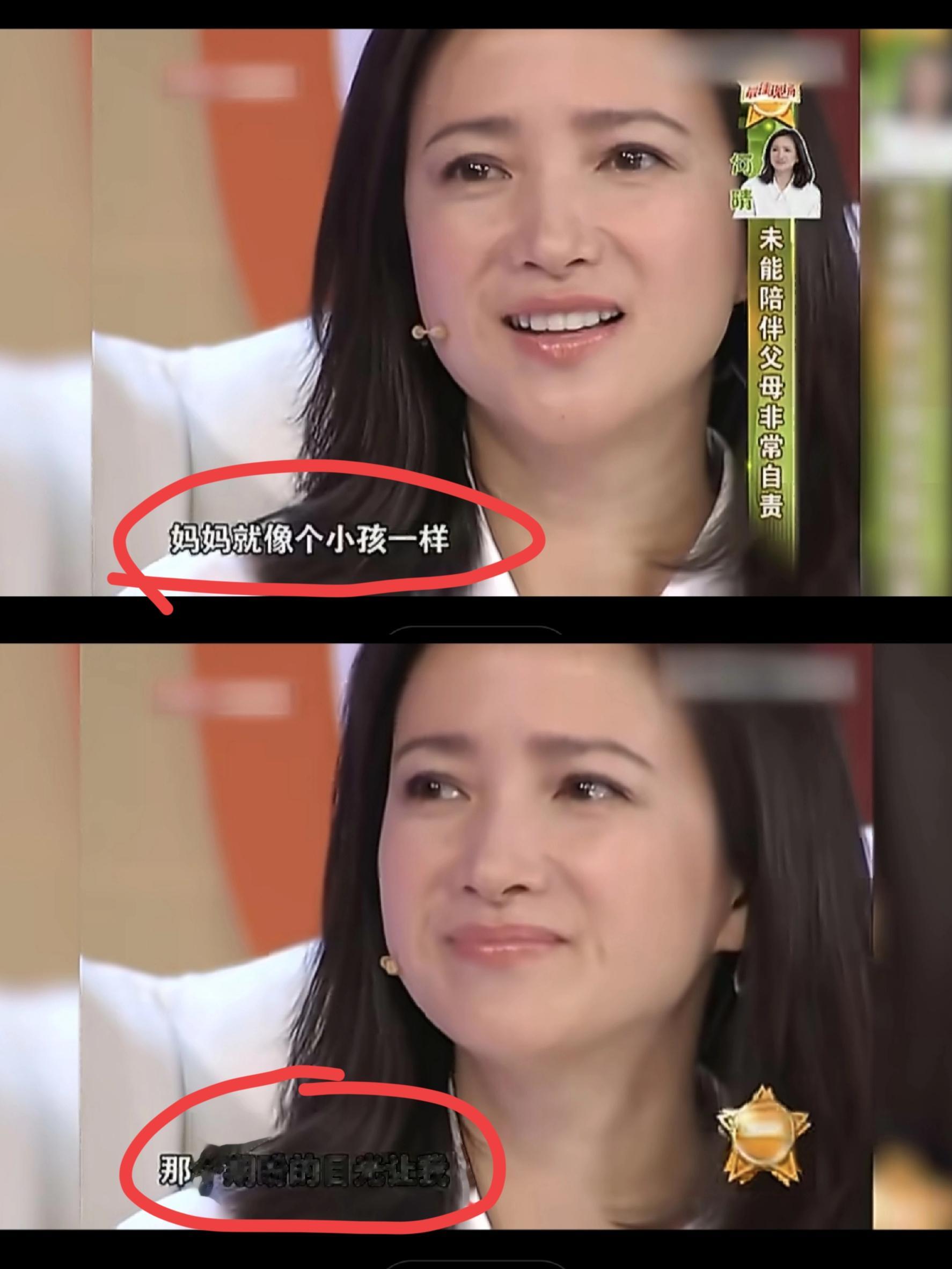 何晴说记得有一次,她和妈妈说晚上回家呢,但是在回家的路上遇到一个同学,她们聊了很久,当时通讯也没有现在这么方便,等回到家的时候已经很晚了,当时何晴说:妈妈就像小孩一样,一直在门口等她,她远远的看到母亲那期盼的眼神很心疼,这句话说完以后她眼眶湿润了!